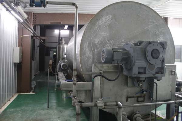 Starch milk comes out of hydrocyclone station is a suspension of starch in water, which needs dewatering up to 38% of moisture in sweet potato production technology. High temperatures cannot be used in this process because of the danger of starch gelatinization which destroys granular structure. It may result in significant changes of the functional starch properties. Therefore, removal of excess water from milk shall be done only under conditions that prevent the gelatinization of starch. Vacuum filter is the widely used dewatering machine in sweet potato production technology which can effectively reduce water content of starch milk.